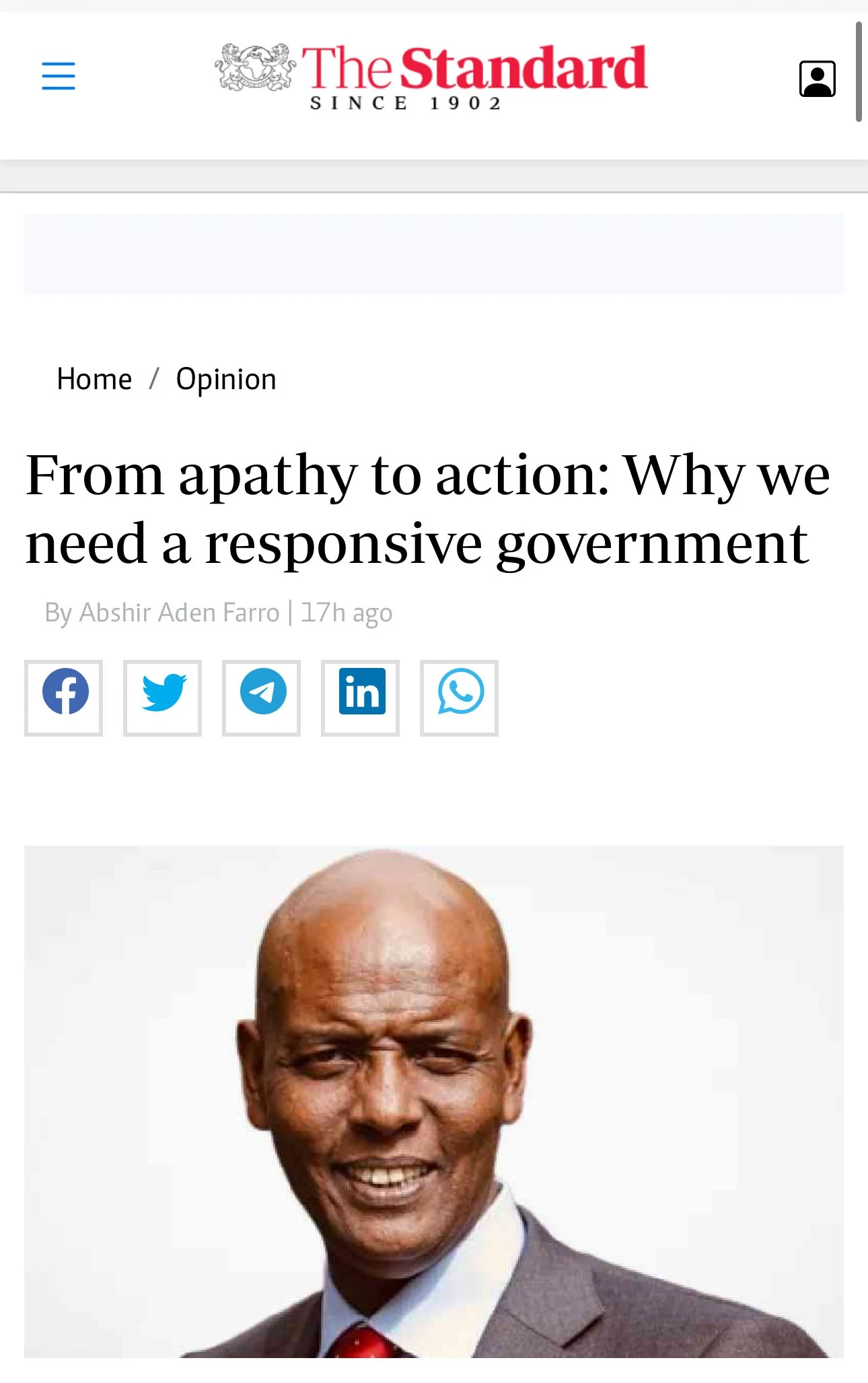 PRESS RELEASE Jul 12 Written By A Ferro https://www.standardmedia.co.ke/opinion/article/2001498831/from-apathy-to-action-why-we-need-a-responsive-government A Ferro